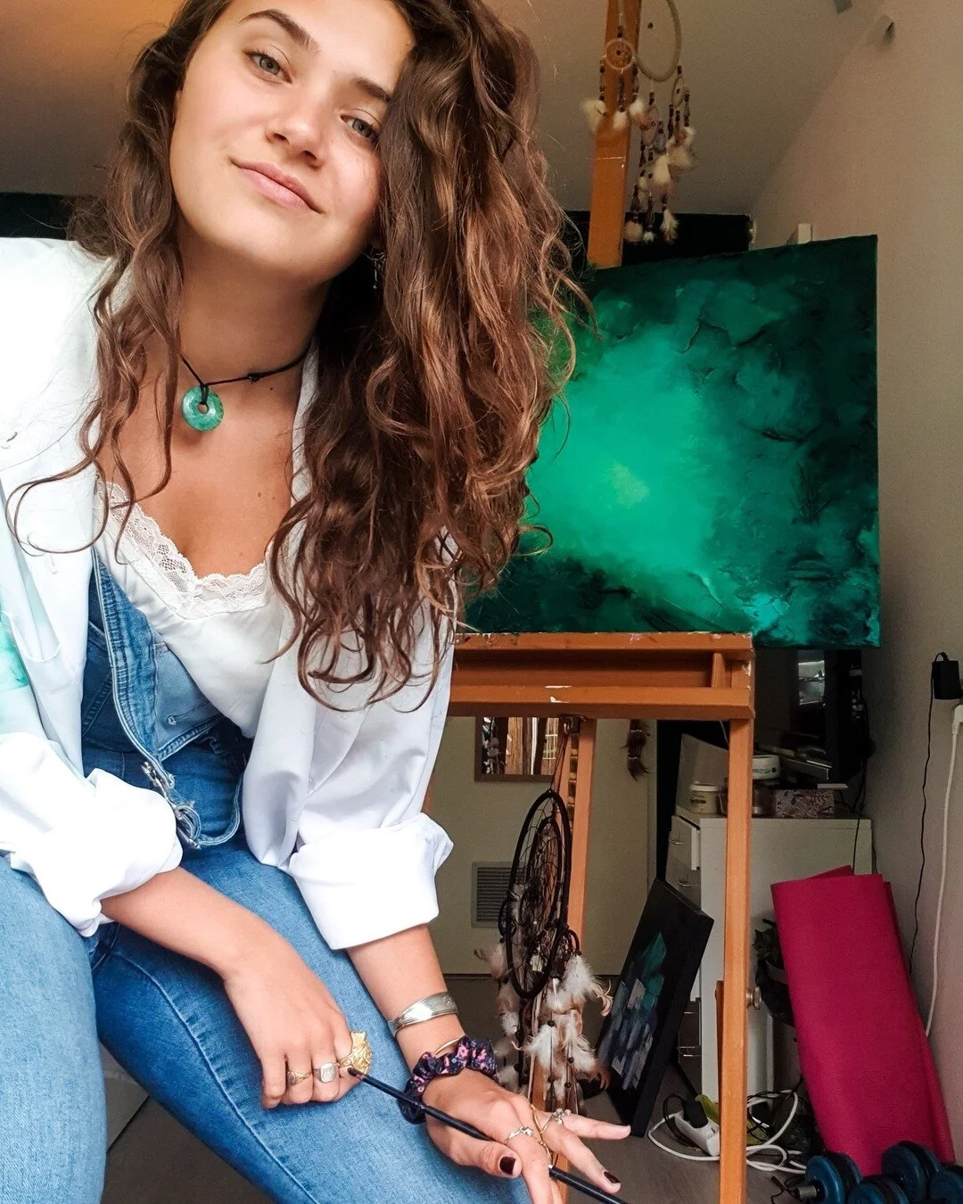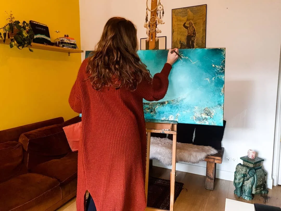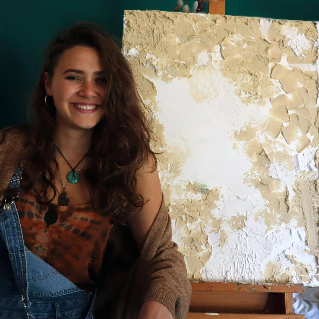Jasmyn draws most of her inspiration from personal experiences, such as traveling the world, discovering new cultures, and exploring diverse natural environments. Many of her pieces incorporate elements like stones, rocks, sand, and colours she encounters along the way. Whether it's walking through a vibrant desert or experiencing pure serenity during a stay abroad, once she gets a creative idea, she wants to relive that moment once she gets back and sits in front of a canvas